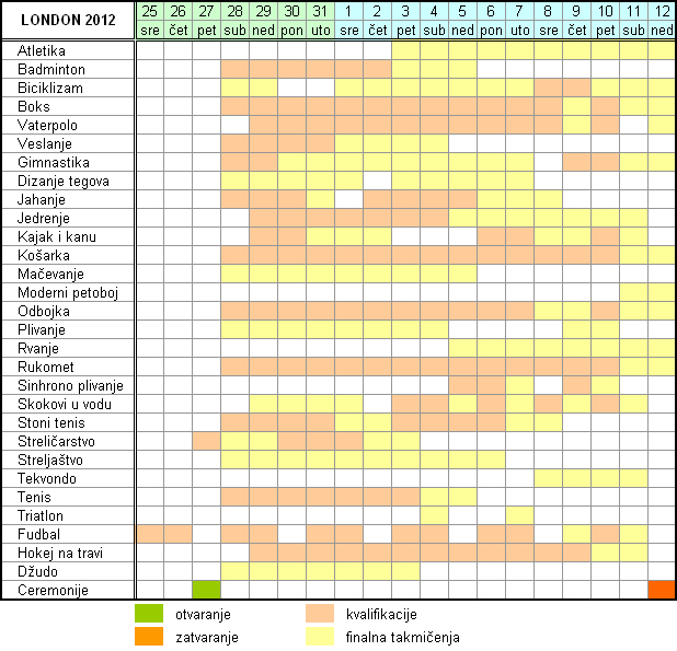 Raspored takmičenja na Olimpijskim igrama London 2012