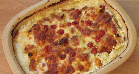 Boraniju izručiti u posudu za pečenje, zatim sipati proprženo povrće, začiniti, izmešati, preliti pavlakom pomešanom sa jajima i zapeći u rerni.