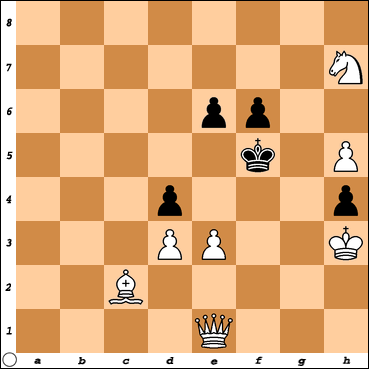 Beli daje mat crnom u 2 poteza. Beli je na potezu.