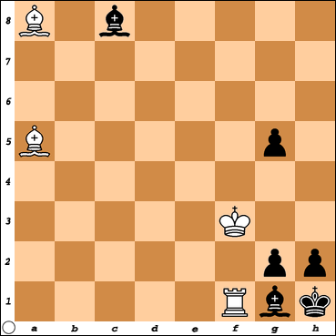 beli kralj f3g3,crni lovac c8h3,beli top f1d1,crni pesak g5g4,beli lovac a5e1,crni lovac g1e3, i beli lovac e1f2 MMMMMMMAAAAAAAATTTTTTTTT.......HEHEHEHE