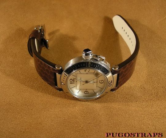 Kožni kaiš za Cartier Pasha sat.Kaiš od zmijske kože, boja "burgundi".