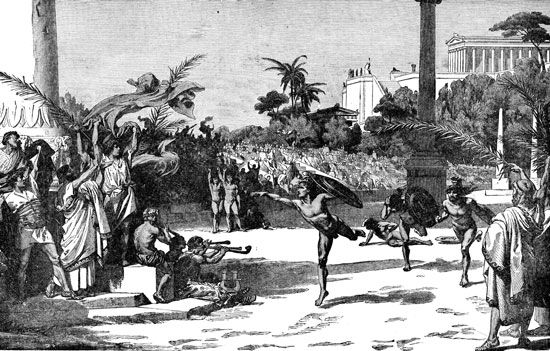 748. pne. uveden je pankration (kombinacija boksa i rvanja), 708. pne. klasično rvanje i petoboj, 688. pne. pesničenje (kao današnji boks), 689. pne. godine trke kočija.